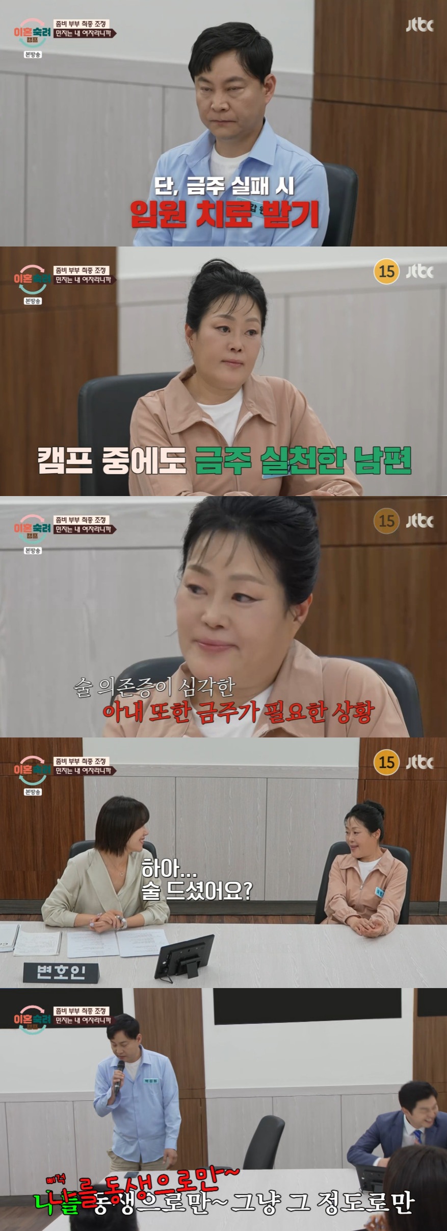 이에 남편 측 변호사는 "아내분은 집에서 술을 싸와서 새벽까지 마셨다더라"고 폭로했다. 아내 또한 심각한 술 의존증이었고, 아내는 그 자리에서 함께 금주하겠다며 이를 어길 시 입원 치료를 약속했다.