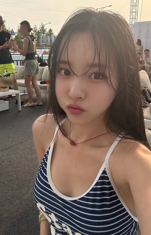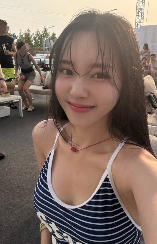 사진 속 이솔이는 줄무늬 홀터넥 스타일의 수영복을 입고 카메라를 응시하고 있다. 젖은 머리카락과 은은한 조명 아래 자연스럽게 드러난 어깨 라인과 쇄골, 볼륨감 있는 몸매가 눈길을 끌었다.