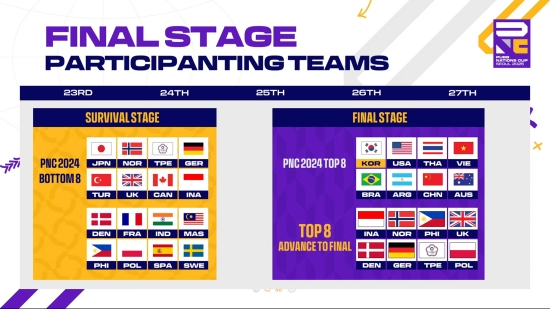 'PNC 2025'는 23일과 24일 양일간 서바이벌 스테이지를 통해 파이널 진출 팀을 선발했다. 경기 결과, 인도네시아, 노르웨이, 필리핀, 영국, 덴마크, 독일, 차이니즈 타이페이, 폴란드가 파이널 스테이지 진출권을 획득했다.