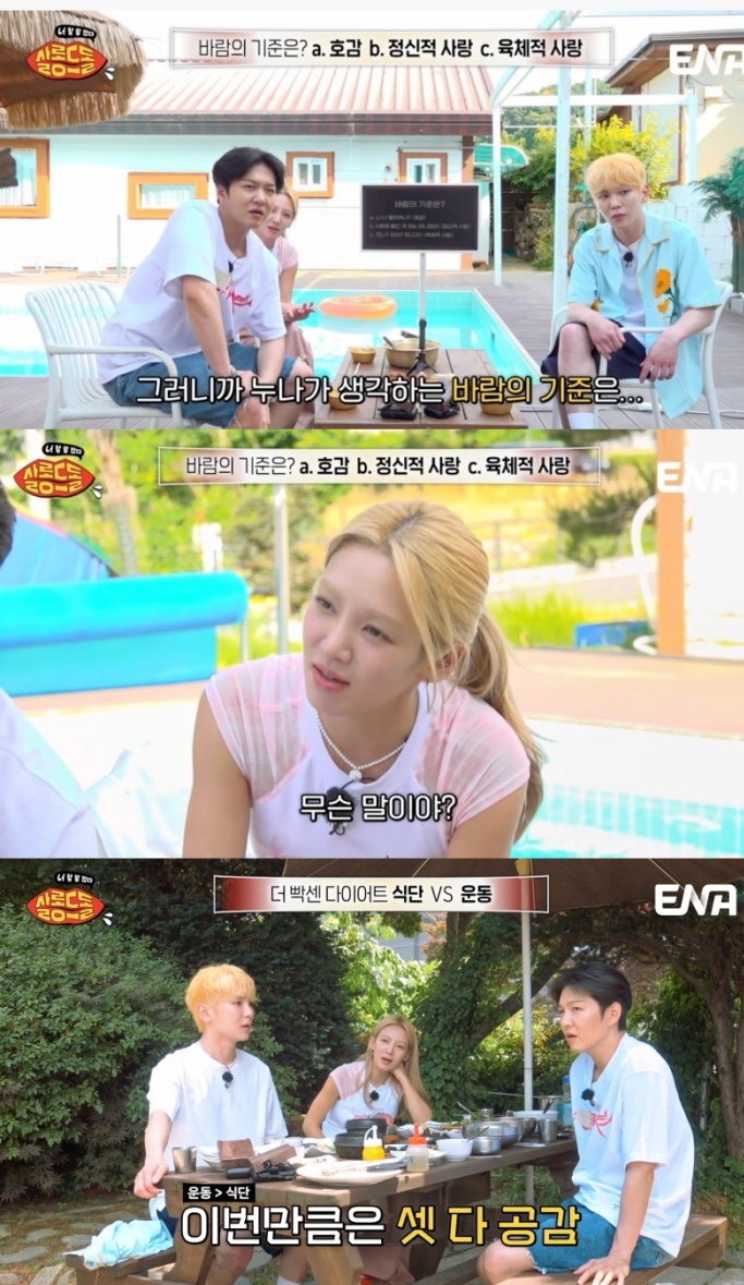 연애 관련 주제에서도 치열한 불꽃 토론이 펼쳐지며 홍미를 자아낸다. 효연은 '연인이 취침 인사 후 드라마 보다 잤다면?'이라는 주제에 대해 "난 잘 생각 없어도 '잘게'라고 한다"라고 말해 폭소를 자아낸다.