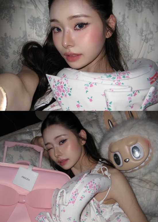이어진 사진에서 프리지아는 초근접 셀카를 공개했다. 발그레한 뺨과 깔끔한 눈썹 라인, 무결점 피부가 감탄을 자아낸다. 또 프리지아는 네임택이 달려있는 분홍색 캐리어도 공개했다. 큰 리본이 붙어있어 사랑스러운 그녀와 잘 어울린다.