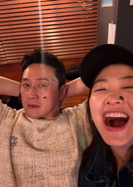 공개된 사진에는 심진화가 남편 김원효와 함께 술집을 방문해 홍윤화의 환대를 받는 모습이 담겼다. 부부는 나란히 앉아 소주잔을 들며 밝은 미소로 건배를 나누고, 귀엽게 얼굴에 스티커를 붙인 채 인증샷을 남기는 등 유쾌한 분위기를 전했다.