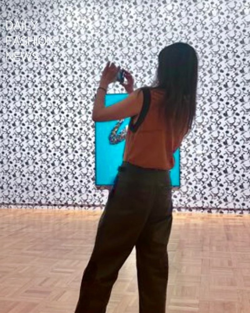 또한 이나영은 원빈과 다르게 독특한 패턴 무늬가 있는 갈색 슬리브리스 상의에 긴 바지를 착용하고 있으며, 높은 통굽 샌들로 화려한 패션을 완성했다.