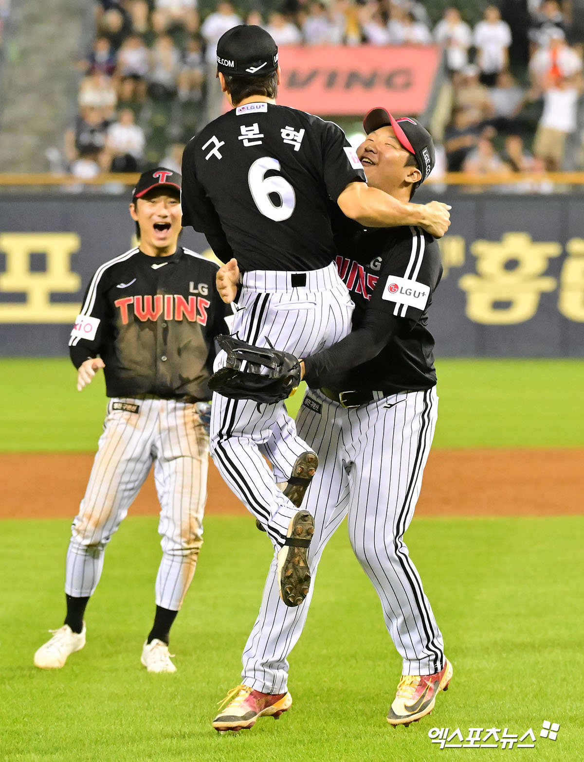 (엑스포츠뉴스 잠실, 김한준 기자) 25일 오후 서울 송파구 잠실야구장에서 열린 '2025 신한 SOL Bank KBO리그' LG 트윈스와 두산 베어스의 경기, LG가 9회초 문성주의 역전 쐐기타와 구본혁의 호수비에 힘입어 두산에 6:5 역전승을 거뒀다.