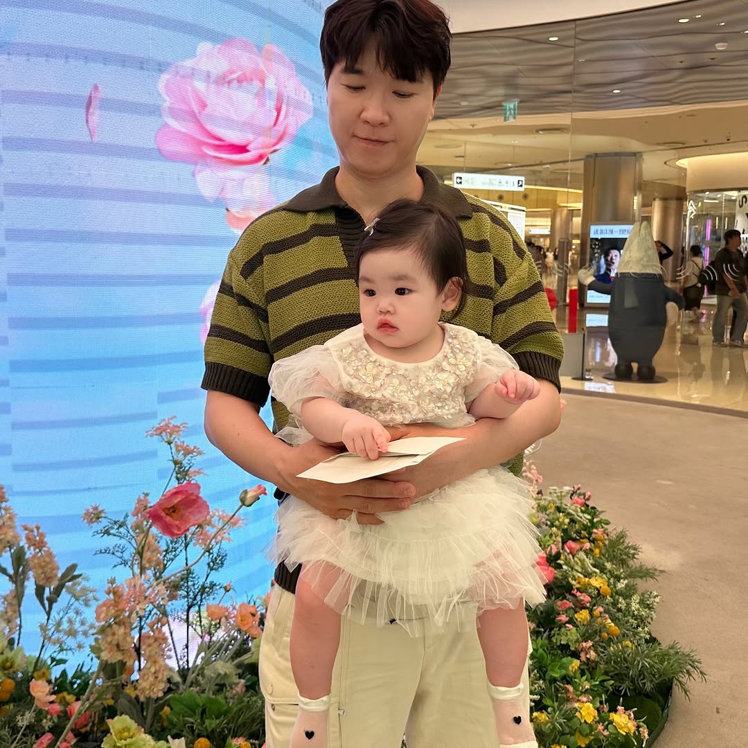 공개된 사진 속 박수홍은 딸 재이 양을 홀로 육아하는 모습이다. 박수홍은 흰색 드레스를 입은 재이 양을 안고 환하게 미소 짓고 있다.