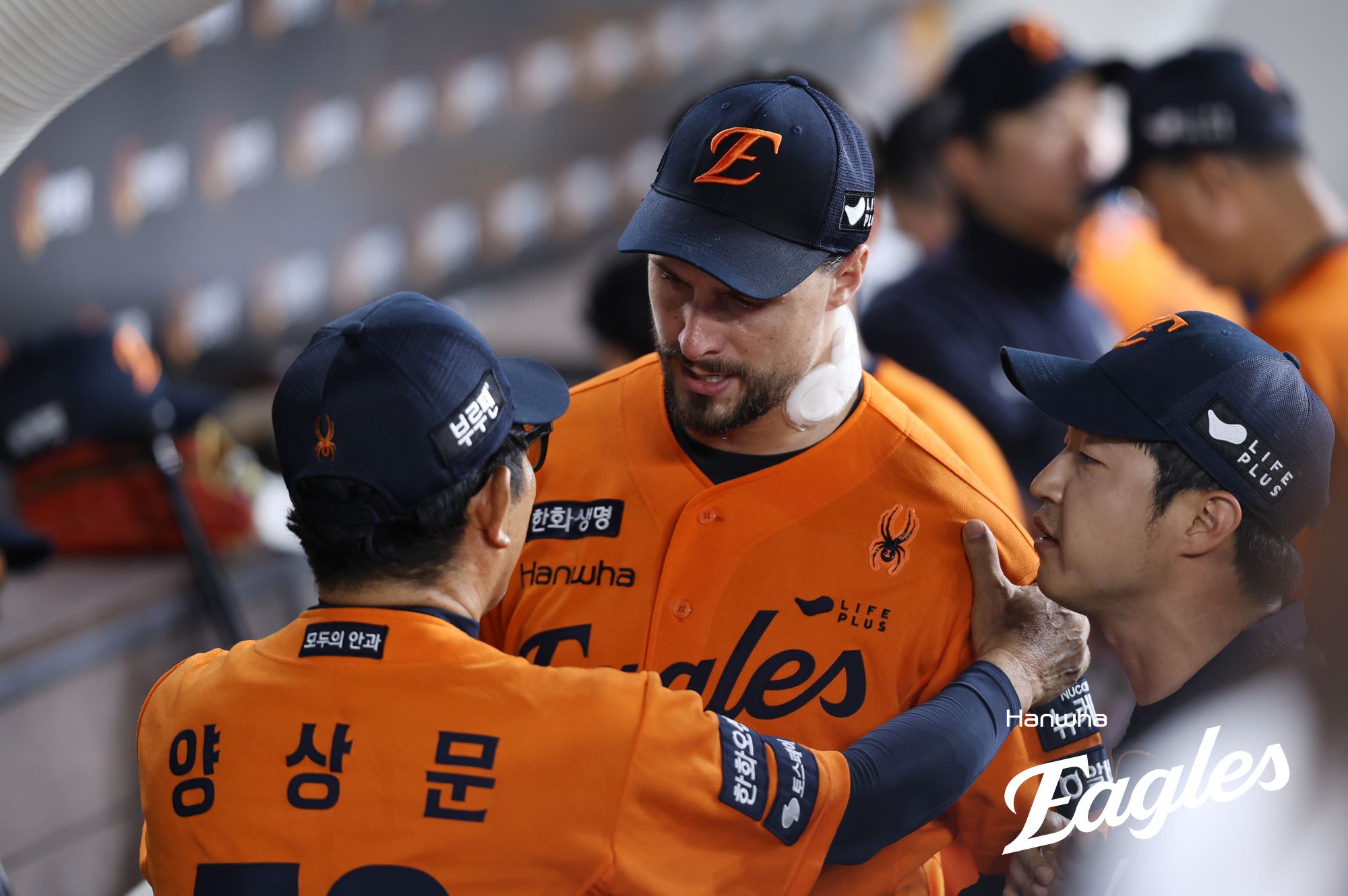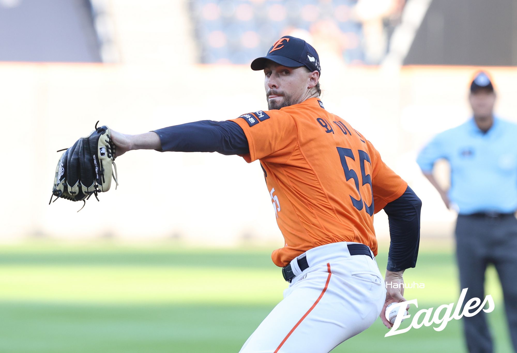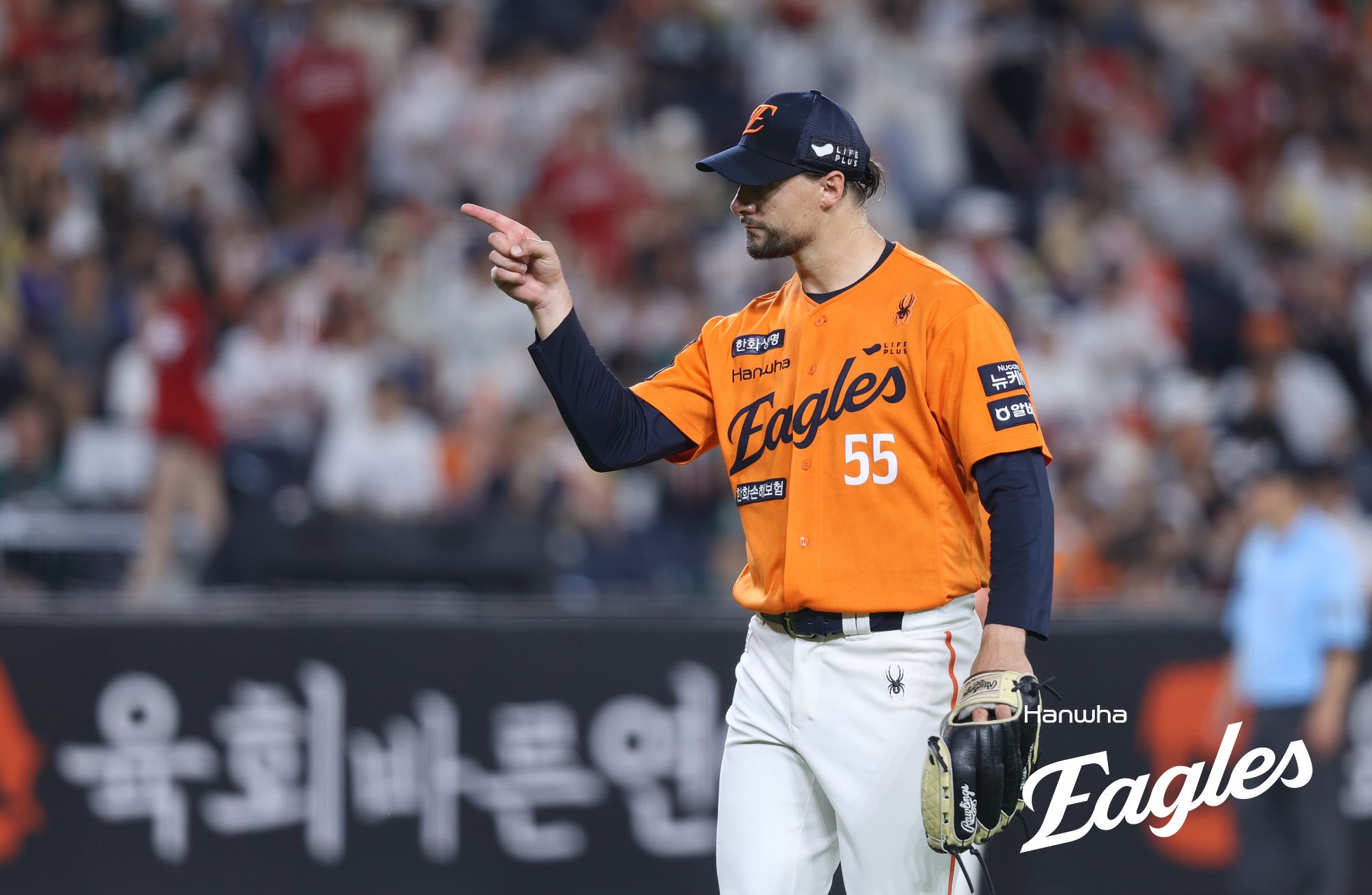 (엑스포츠뉴스 대전, 조은혜 기자) 한화 이글스 라이언 와이스가 '예수님' 별명을 안긴 긴 머리를 질끈 묶고, 7이닝 완벽투를 펼치면서 팀의 승리를 이끌었다.