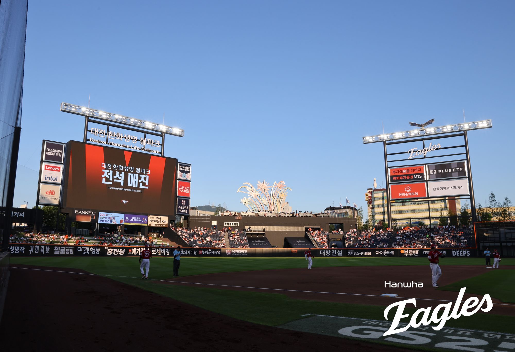 한화는 25일 대전 한화생명 볼파크에서 2025 신한 SOL Bank KBO리그 SSG 랜더스와의 홈경기에서 오후 6시 30분 기준 1만7000석 전석 매진을 달성했다고 밝혔다. 한화의 시즌 40번째 매진.