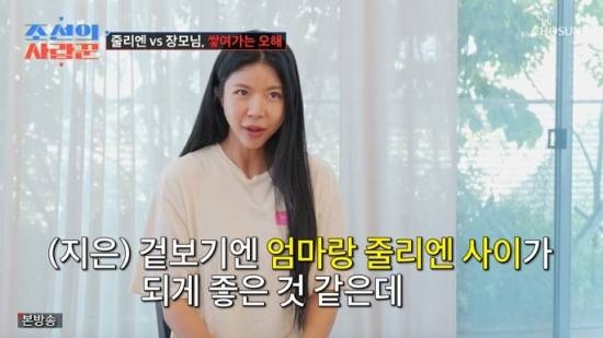 한편, 제이제이는 지난해 5월 줄리엔 강과 결혼했다. 이들 부부는 지난 21일 '조선의 사랑꾼'에서 결혼 1년 차 신혼 생활을 공개하며 제이제이 어머니와 합가한 소식을 알렸다. 그러나 줄리엔 강과 제이제이 어머니는 서로 불편해하는 기색을 드러내는 등 합가 갈등이 그려져 우려 목소리가 나왔다.