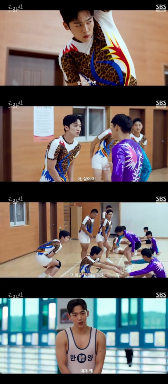 (엑스포츠뉴스 오수정 기자) '트라이'에서 김요한이 에어로빅 의상을 입고 등장했다.