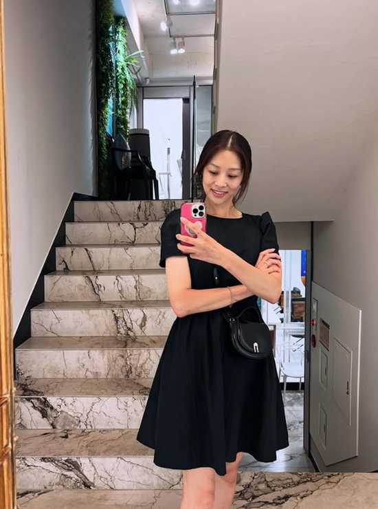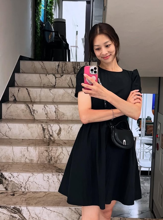 공개된 사진 속 장신영은 더운 날씨를 의식한 듯 머리를 하나로 묶고, 사진을 남기고 있다. 작은 가방까지 블랙으로 맞춘 그녀의 센스가 시선을 모은다. 편하게 남긴 사진 한 장마저도 화보 같은 느낌이다.