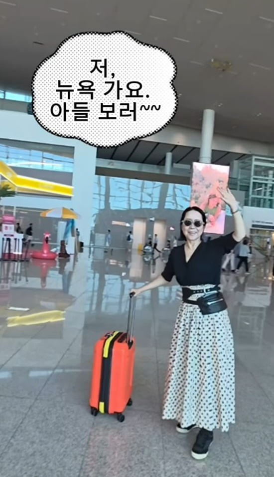 27일 윤영미는 "뉴욕 가요, 아들 보러"라는 글과 함께 공항을 찾은 모습이 담긴 영상을 게재했다.