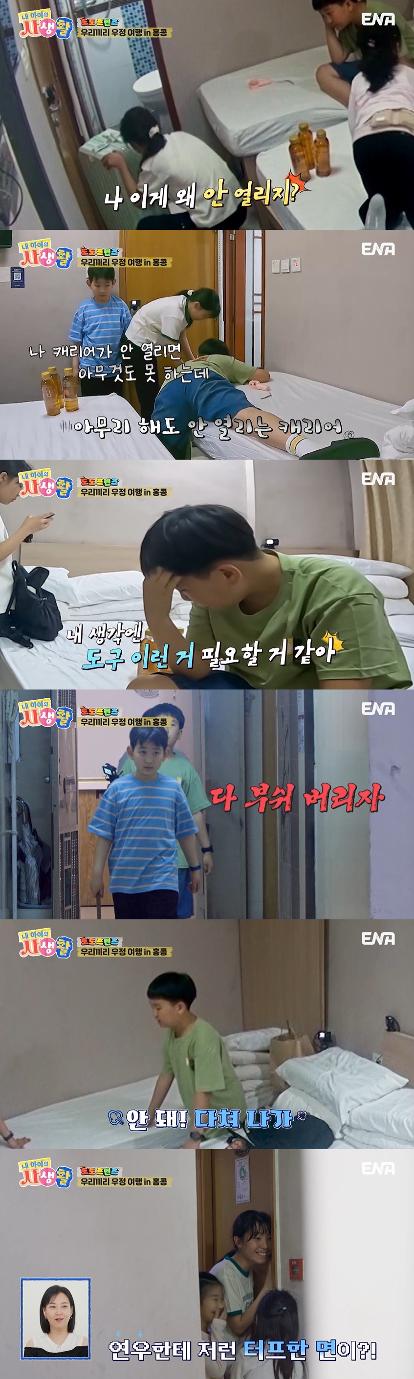 이날 홍콩 숙소 도착해 짐을 풀던 아이들 속 예하는 "잠시만. 나 이게 왜 안 열리지?"라며 열리지 않는 캐리어에 당황해했다.