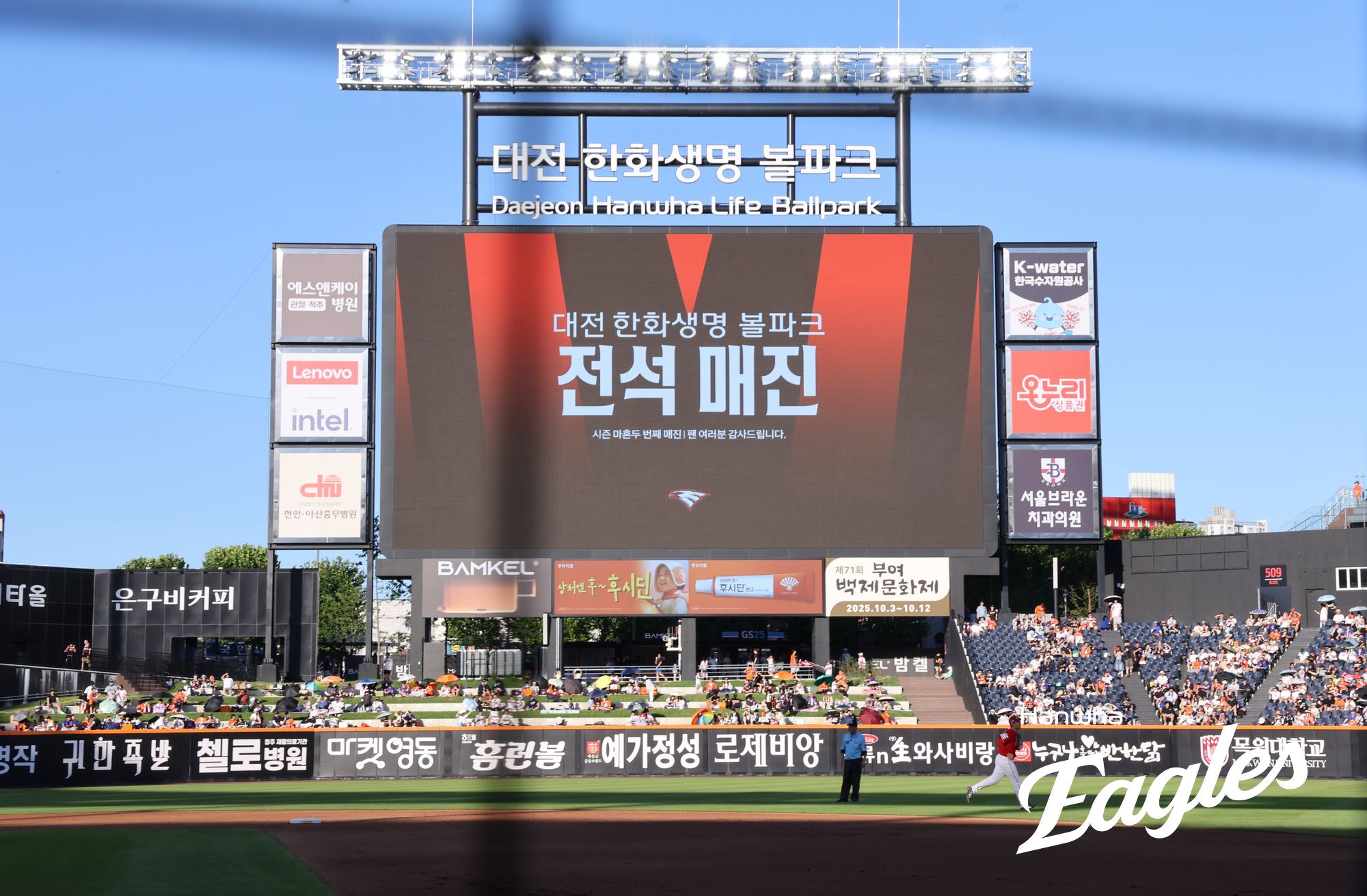 단독 1위를 달리고 있는 한화는 27일 대전 한화생명 볼파크에서 열린 2025 신한 SOL Bank KBO리그 SSG 랜더스와의 홈경기에서 경기 개시 한 시간 여 전인 오후 5시 8분 1만7000석 전석 매진을 달성했다고 발표했다. 한화의 시즌 42번째 매진.