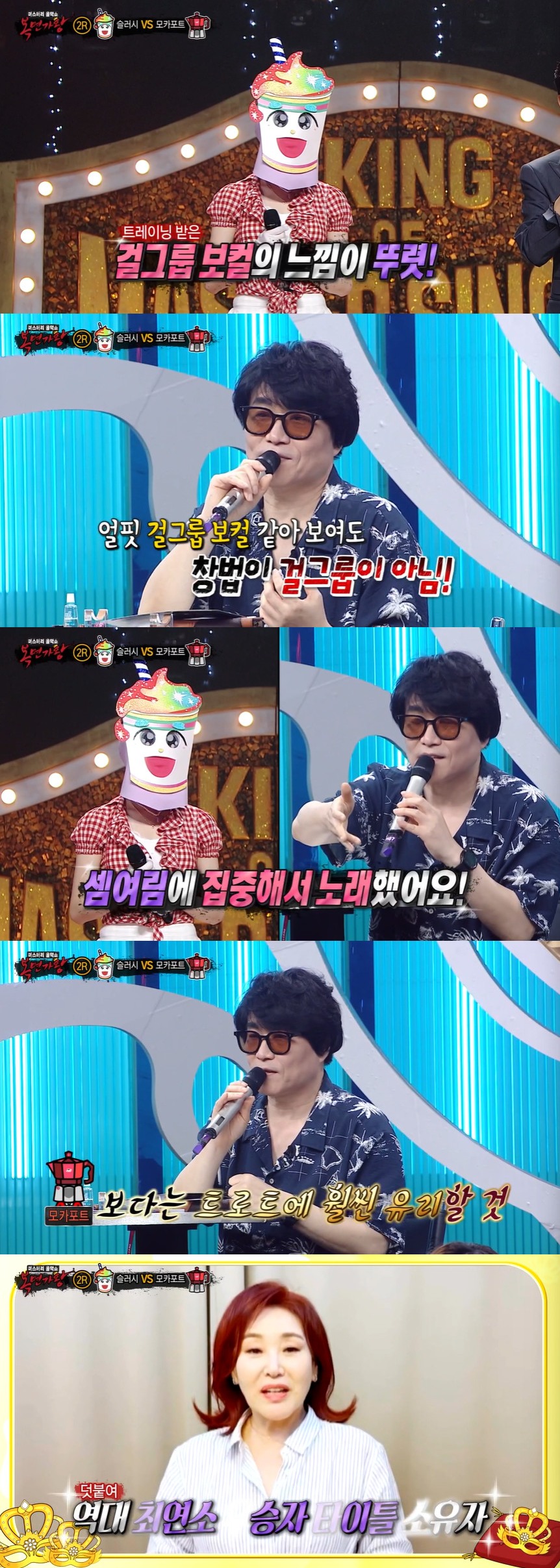 27일 방송된 MBC '복면가왕'에는 ARrC 도하를 꺾고 올라온 슬러시와 가수 미나를 꺾은 모카포트의 대결이 펼쳐졌다.