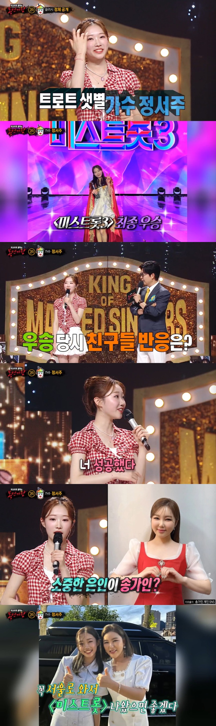 뒤이어 공개된 슬러시의 정체는 '미스트롯 3'에서 1위 '진'을 차지한 정서주였다.
