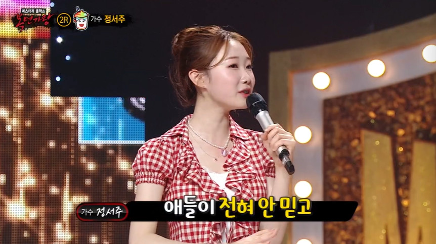 이어 슬러시의 지인으로는 트로트의 여왕 주현미가 영상으로 등장해 힌트를 제공했다. 그는 "제 노래를 아주 맛깔나게 잘 불러서 제자 삼고 싶을 만큼 아끼는 분"이라며 '역대 최연소 우승자' 타이틀을 가지고 계신 분"이라고 말해 트로트 인재임을 추측게 했다.