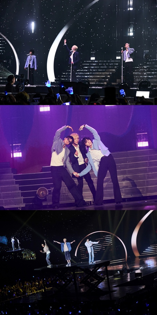 (엑스포츠뉴스 조혜진 기자) 그룹 위너가 오랜만의 콘서트로 이너써클(팬덤명)과 추억을 남겼다. 이번 공연에서는 병역법 위반 혐의를 받는 멤버 송민호를 제외하고 강승윤, 김진우, 이승훈 세 멤버가 무대를 채웠다.