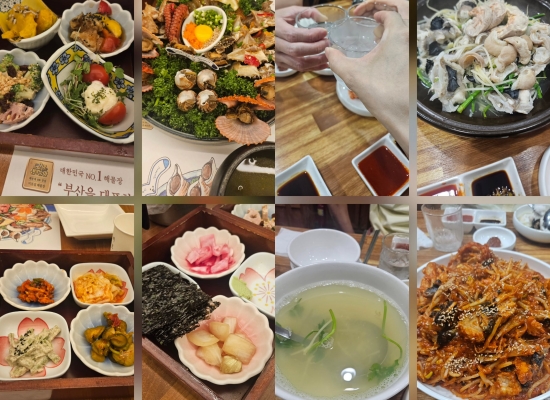 두 사람이 공개한 사진에는 양식부터 밀면, 곱창, 해산물까지 부산을 알차게 돌아다닌 흔적들이 담겨 있다.