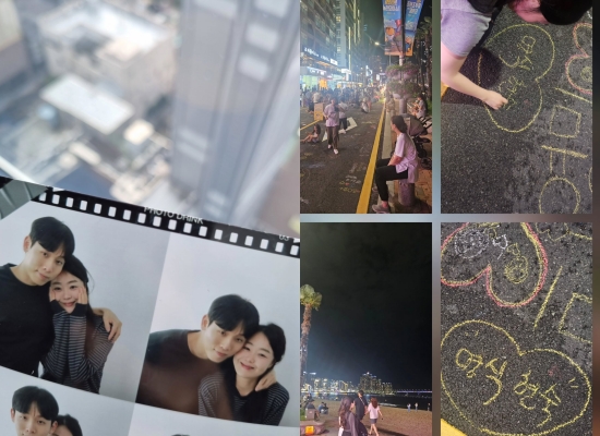 특히 낙서가 가능한 광안리 아스팔트 바닥에는 직접 영식과 현숙 이름을 쓰고 하트를 그려 눈길을 끌었다. 부산대 교수로 재직 중인 26기 영수와 함께한 인증 사진에서도 찰싹 달라붙어 보는 이들의 부러움을 자아냈다.