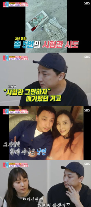 양현민은 "저도 물론 아이도 좋아하고 아이를 낳고 싶다. 근데 저는 아이를 낳고 싶어서 결혼을 한게 아니라 사랑이가 좋아서 한거다. 사랑이가 시험관 할 때 너무 힘들어했다. 자기를 실패한 사람이라고 생각을 하더라"면서 안타까워했다.