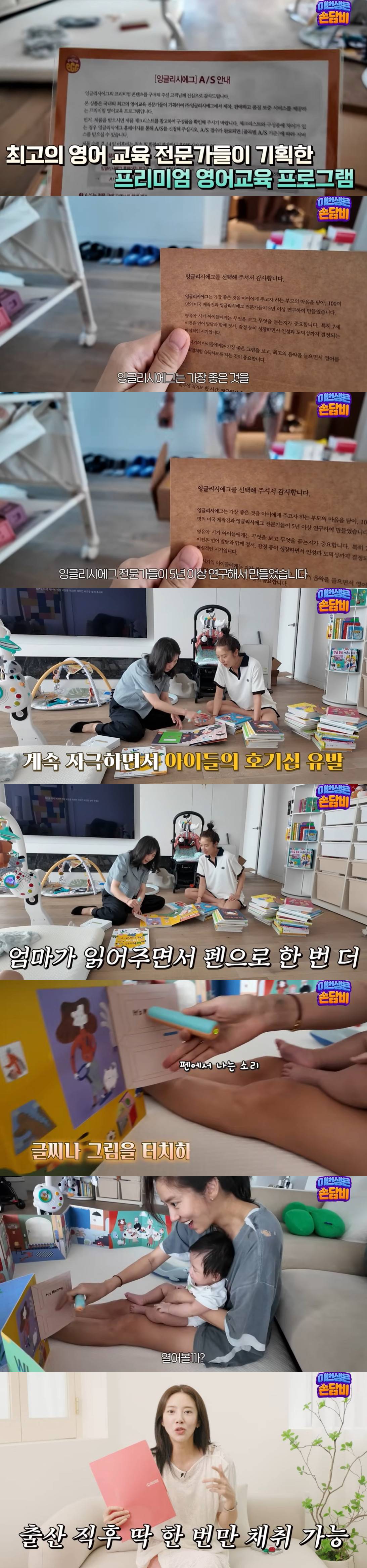 손담비는 잉글리시에그 책의 설명 글을 읽으며 "최고의 영어 교육 전문가들이 기획한 프리미엄 영어 교육 프로그램"이라고 말했다. 해당 책은 풀세트로 구입 시 약 450만 원으로 알려졌다.