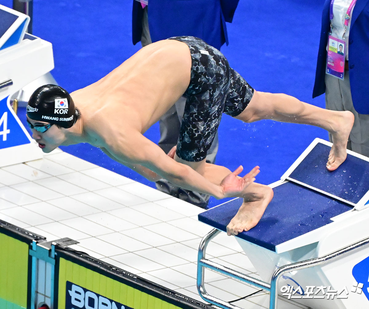 다만 황선우는 '꿈의 무대' 올림픽에서 이렇다 할 성과를 내지 못했다. 지난해 7월 파리 하계올림픽 남자 자유형 200m 준결승에서 1분45초92의 기록으로 전체 9위에 그치면서 결승 진출에 실패했다.