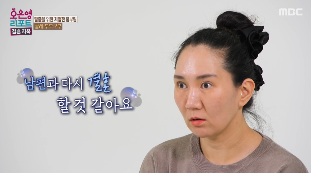 또 아내는 제작진이 "남편을 처음 만났을 때도 시간 돌릴 수 있다면 다시 결혼할 거냐"라고 묻자, "할 것 같다. 처음 만났던 남편이면 할 것 같다"라며 "후회는 좀 할 수도 있을 것 같은데 이 선택에 대해서는 옳다고 생각할 것 같다"라고 솔직한 마음을 전했다.
