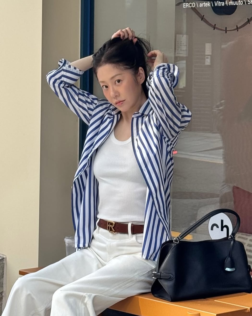또한 고현정은 스트라이프 셔츠에 아이보리 컬러의 팬츠를 매치한 편안한 차림으로 카페 앞 벤치에서 촬영에 임하는 현장을 공유해 사랑스러운 매력을 더했다.