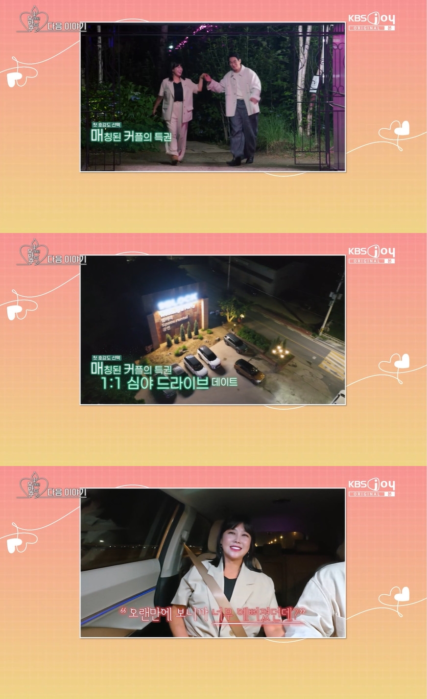 그렇게 서로를 선택한 두 사람은 첫 호감도 선택 매칭의 혜택으로 심야 데이트를 나섰다. 영상 말미 공개된 예고편에서 이규한은 "오랜만에 보니까 너무 예뻐졌다"며 솔비에게 말을 건넸고, 솔비는 "오빠랑 친해져 보고 싶다"며 호감을 보였다.