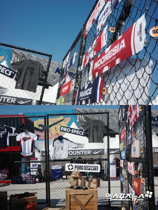 대회 기간 경기장 외부에는 '펍지 네이션스 라운지'가 마련됐다. 이곳에는 대회 우승 트로피, 24개 참가팀의 유니폼, 각 팀을 상징하는 방탄 헬멧 등이 전시됐다.