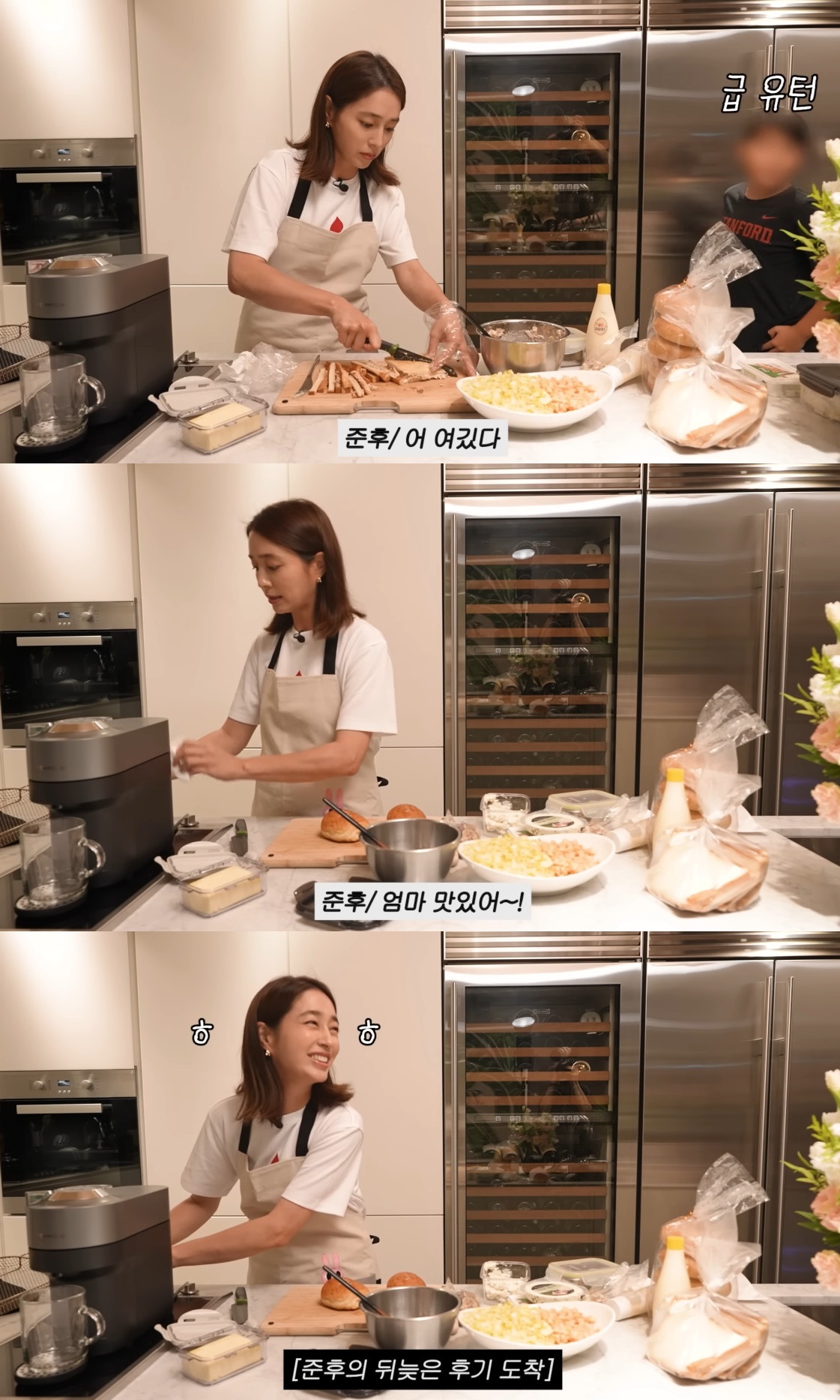 이민정은 요리 전 부엌에서 자신이 할 요리를 말로 설명했고, 그 순간 주방에 들어온 아들 준후는 "여기 있어?"라며 이민정이 촬영 중임을 모르고 등장했다.