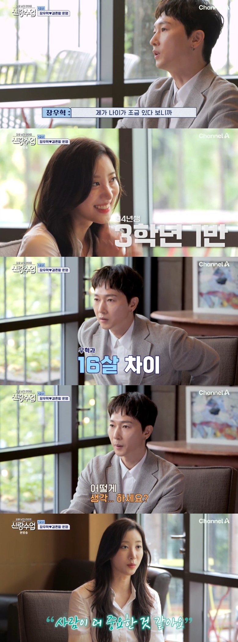 두 사람의 나이 차이는 16살 차이로, 긴장된 마음으로 답변을 기다리던 장우혁은 "사실 나이보다는 사람이 더 중요한 것 같다"는 오채이의 말에 미소를 보였다.