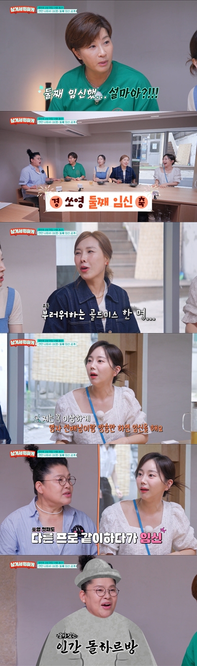 이에 쏘영은 "임신했다"며 웃음을 터트렸고, 신봉선은 "다 가졌다. 천만 구독자 가져, 애도 가져"라며 부러워하는 모습을 보였다.