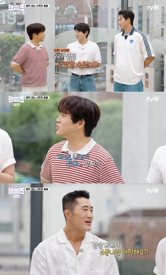 31일 방송된 tvN '핸썸가이즈'(이하 '핸썸즈')에서는 차태현, 이이경, 신승호, 김동현, 오상욱이 대학로에서 모인 장면이 전파를 탔다.