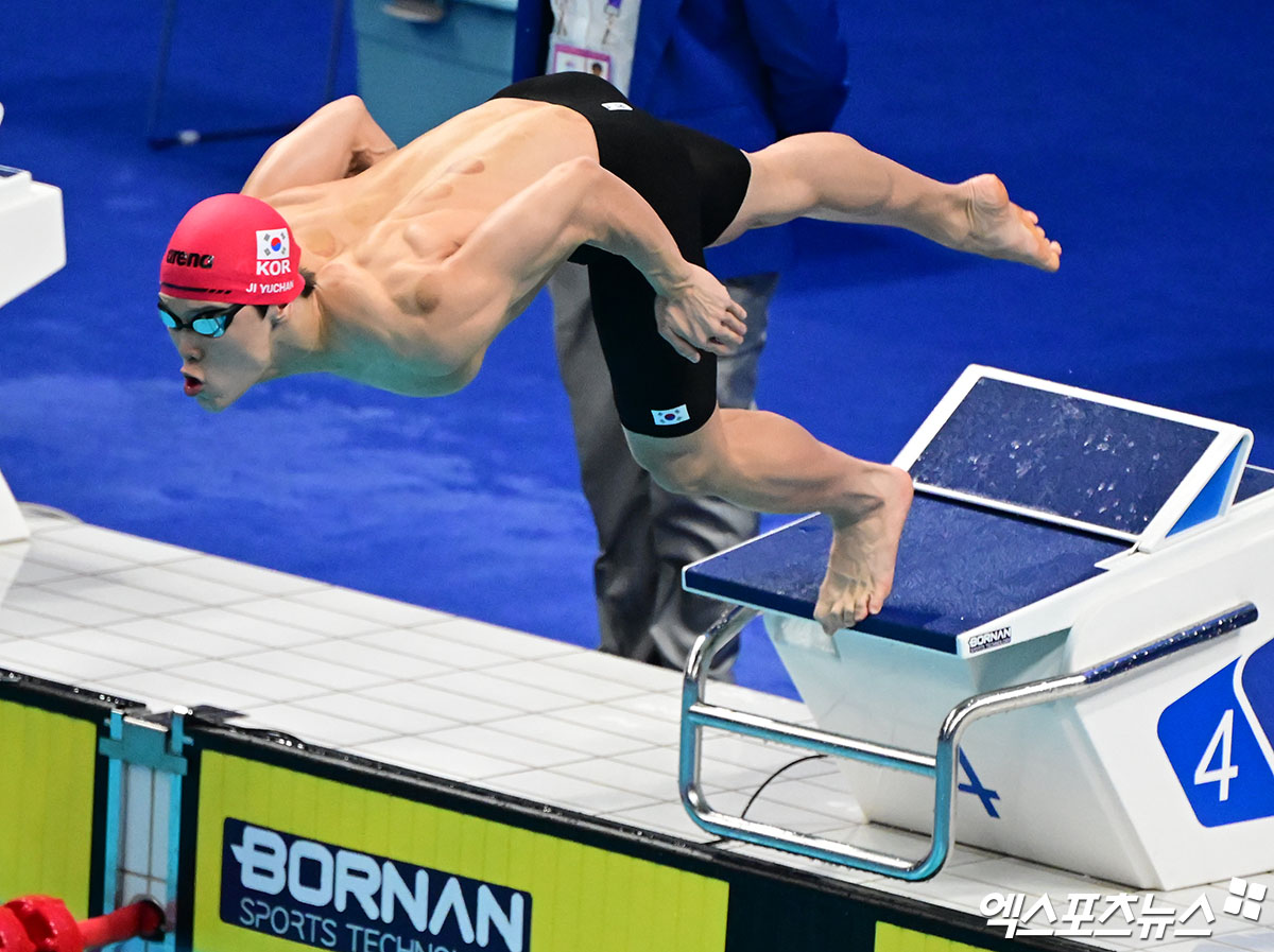 지유찬은 "예선에서 잘했으니까 오후에 진행될 준결승만 생각하면서 잘 준비하다 보면 결승도 노릴 수 있지 않을까. 결승에서도 잘해서 기록을 깨는 게 목표다. 우선 개인 기록을 경신하고, 더 좋은 기록이 나온다면 아시아 신기록도 노리고 싶다"며 "일단 예선이 끝났으니까 바로 숙소에 들어가서 쉬다가 워밍업부터 천천히 잘 해야 할 것 같다"고 전했다.