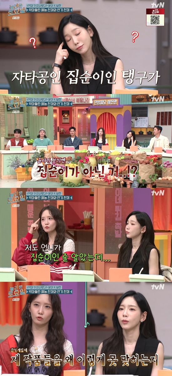 이날 방송에서 붐이 임윤아에게 "윤아 씨는 태연이 진정한 집순이인지 의심스러울 때가 많다고 인터뷰를 했다. 우리는 태연이 소녀시대의 공식 집순이라고 알고 있는데 의심스렵냐"라고 질문했다.