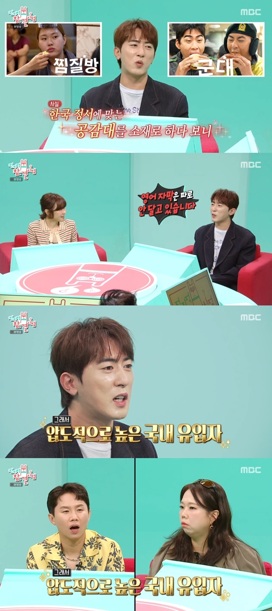 전현무는 "숏박스 채널에서 천만 조회수를 넘긴 영상이 무려 19개다"라며 김원훈의 유튜브를 소개했다. 김원훈은 "공감대 자체가 한국 정서에 맞아서 영어 자막은 따로 안 달고 있다. 국내 유입자들이 (많다)"라고 밝혔다.