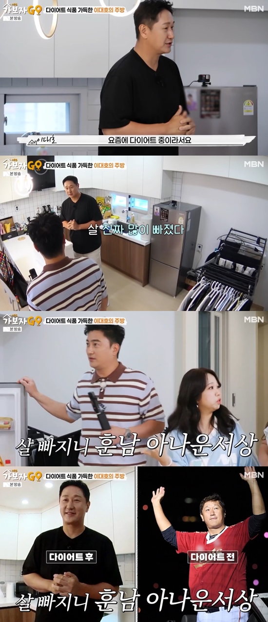이대호는 주방에서 "저는 요즘 다이어트 중이라 냉장고에 거의 마시는 것 밖에 없다. 제로 (음료) 많이 먹고 있다"라며 소박한 냉장고를 공개했다. 이에 김민경이 "제로 (음료)가 좋긴 좋냐"라고 질문했다. 이대호는 "그냥 체면이다. 마음의 짐을 좀 덜 수 있다. 여기는 마실 것밖에 없고 반찬이 거의 없다. 여기서 밥을 거의 안 해 먹는다"라고 설명했다.