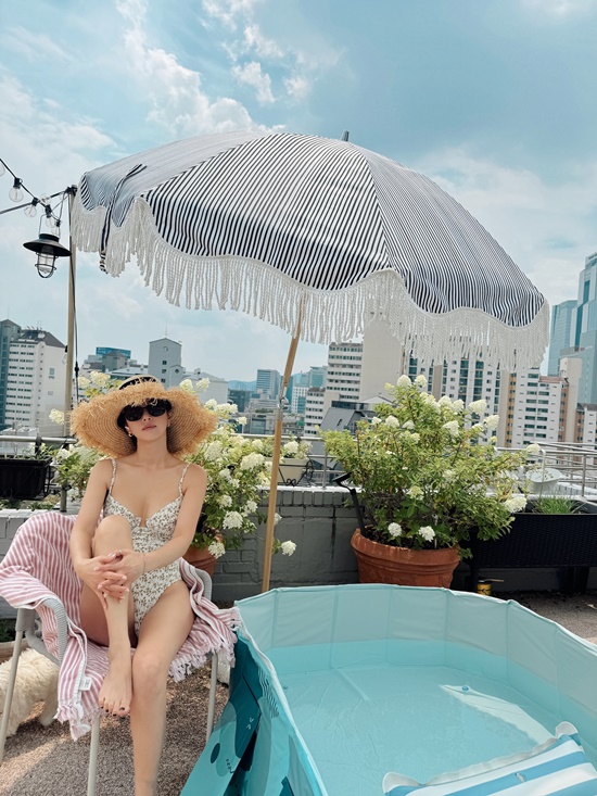 (엑스포츠뉴스 이창규 기자) 배우 기은세가 자신의 집 옥상에서 바캉스를 즐겼다.