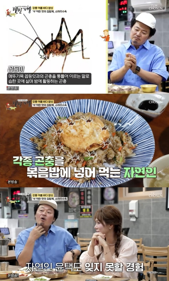 그는 "곱등이를 주전자에 넣은 분이 있었다. 타닥타닥 튀는 소리가 물 끓이는 소리인 줄 알았다. 알고 봤더니 귀뚜라미, 꼽등이를 넣은 거더라. 그걸 볶음밥에 넣어주셨다. 그걸 드신다더라"라며 한숨을 쉬었다.