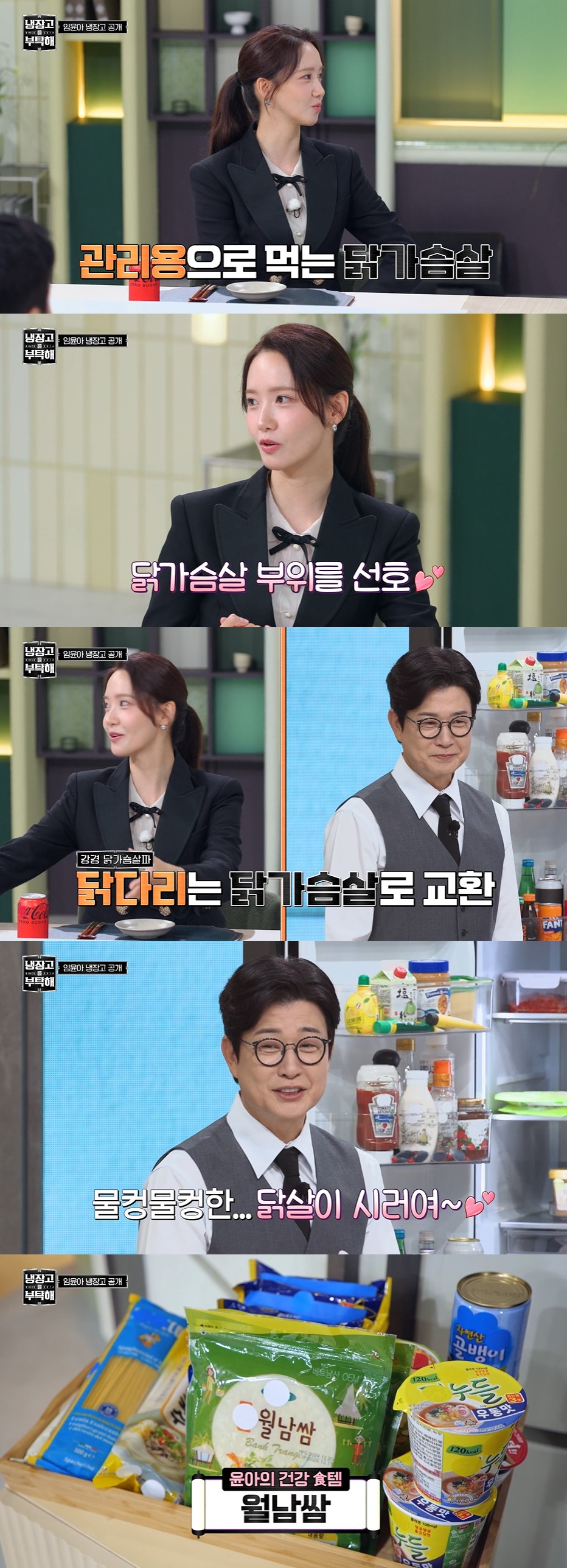 윤아는 "관리할 때 닭가슴살을 먹기도 하고 원래도 닭고기에서 닭가슴살을 좋아한다 퍽퍽살을 좋아한다. 맛있다"라고 밝혔다.