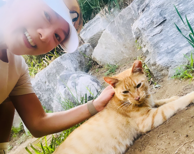사진 속 김희애는 러닝 복장을 하고 한강 길가에서 고양이와 다정하게 셀카를 찍고 있다. 김희애는 고양이의 등을 조심스럽게 쓰다듬으며 환한 미소를 지었고, 고양이는 경계심 없이 몸을 기대며 편안한 분위기를 자아냈다.