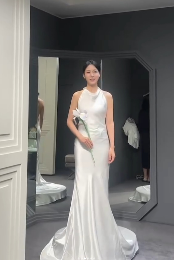 공개된 사진 속 옥순은 22기 경수와의 재혼을 준비 중인 근황을 공개했다. 옥순은 고급스러운 새틴 소재의 웨딩드레스를 입고 우아한 자태를 뽐냈으며, 한 손에는 하얀 백합을 들고 환하게 미소 지었다. 옆에는 검은 슈트를 입고 늠름한 자태를 뽐내는 경수의 모습도 담겨 눈길을 끌었다.
