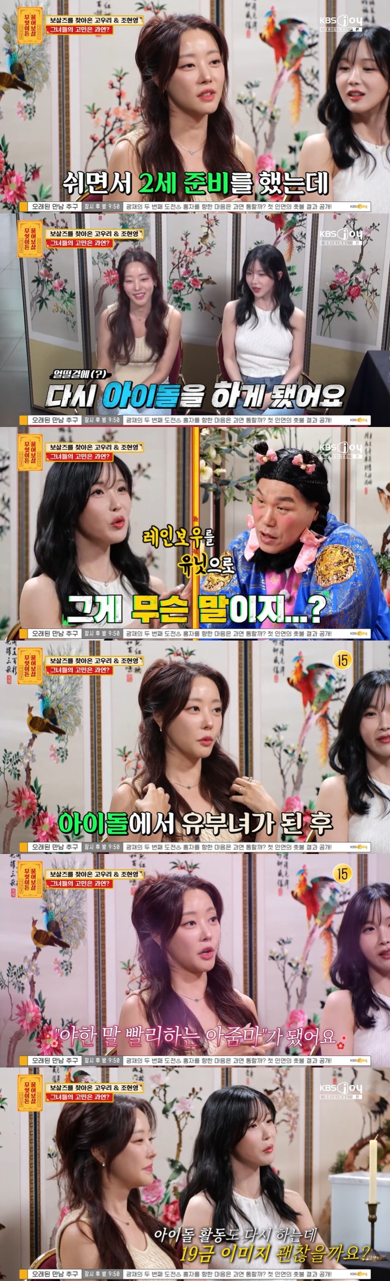 4일 방송된 KBS Joy '무엇이든 물어보살' 327회에는 2세대 대표 걸 그룹 레인보우 출신의 고우리와 조현영이 출연했다.