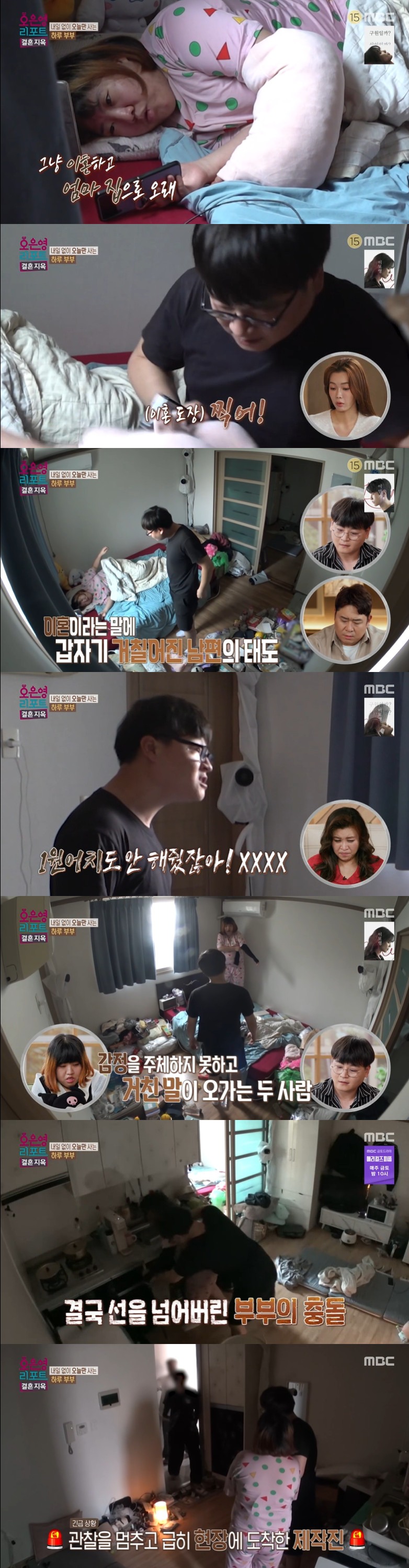 아내의 이혼 언급에 남편은 "(이혼 도장) 찍어. 찍으라고"라며 거칠어진 태도를 보였다.