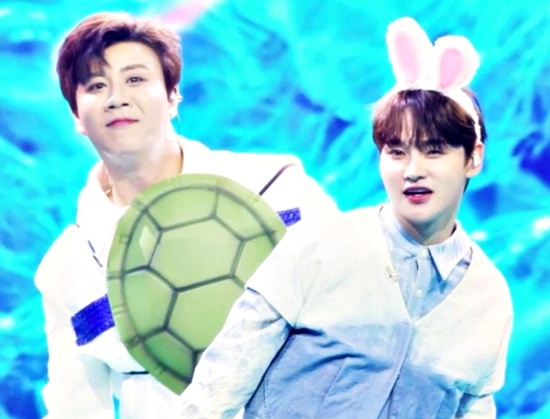 특히 박서진과 진해성은 각색한 ‘별주부전’으로 콩트를 꾸며 현장에 ‘귀염 에너지’를 발사한다. 소리꾼 김준수가 판소리로 오프닝을 꾸민 후 뒤이어 진해성이 거북이 분장을 한 채 묵직하게 등장하고, 박서진이 토끼 머리띠를 착용한 채 깡충깡충 뛰어서 무대 위에 오르는 것. 박서진과 진해성은 김준수의 소리에 맞춰 토끼 간을 두고 옥신각신하는 연기를 해낸 후 노래를 시작하고, 박명수 특유의 ‘쪼쪼 댄스’에 이어 사랑스런 토끼와 거북이 엔딩을 선보이는 케미만점 무대를 완성한다. 멤버들 사이 “너무 귀여웠다”라는 함성이 터진 가운데 박서진, 진해성, 김준수의 무대는 어떨지 관심을 모은다.