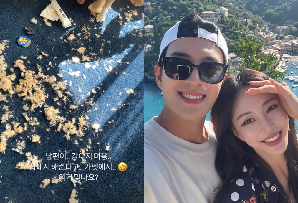 5일 한예슬은 자신의 SNS 스토리에 "남편이..강아지 미용.. 집에서 해준다고.. 카펫에서.. 이거 맞나요?"라는 글과 함께 사진 한 장을 게재했다.