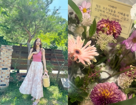'세븐♥' 이다해, 머리부터 발끝까지 '러블리'…커다란 분홍 꽃다발까지 [★해시태그]