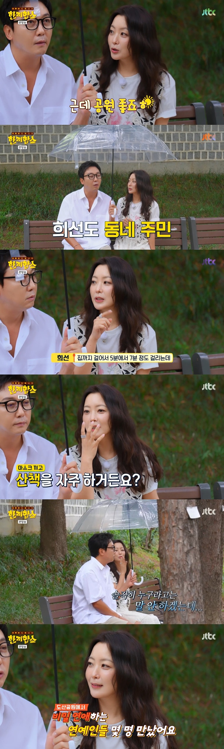 탁재훈이 "좋다"고 하자 김희선은 "사실 저희 동네다. 걸어서 집까지 5분에서 7분 정도 걸리는데 자주 온다. 마스크 끼고 산책을 자주 한다"고 전했다.