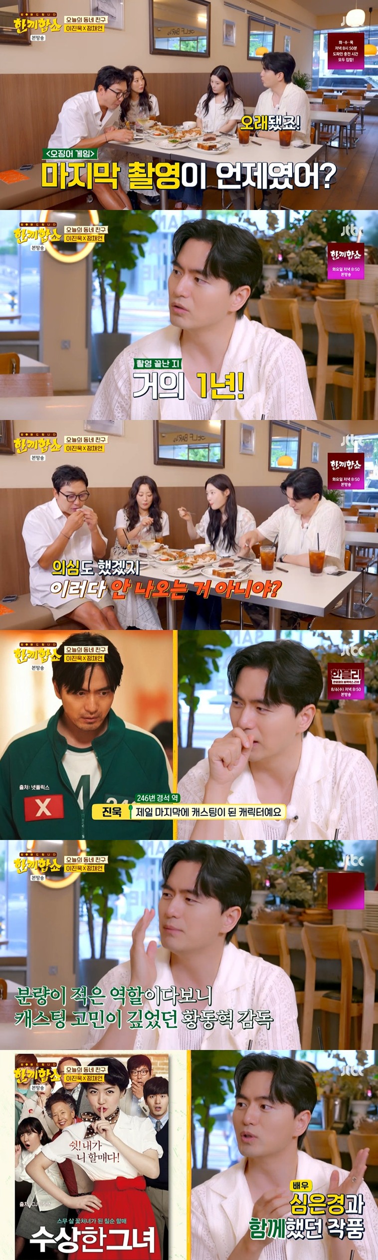 이날 김희선이 "'오징어 게임' 마지막 촬영이 언제였냐"고 묻자 이진욱은 "오래됐다. 작년 초였나"라며 약 1년이 지났다고 밝혔다.